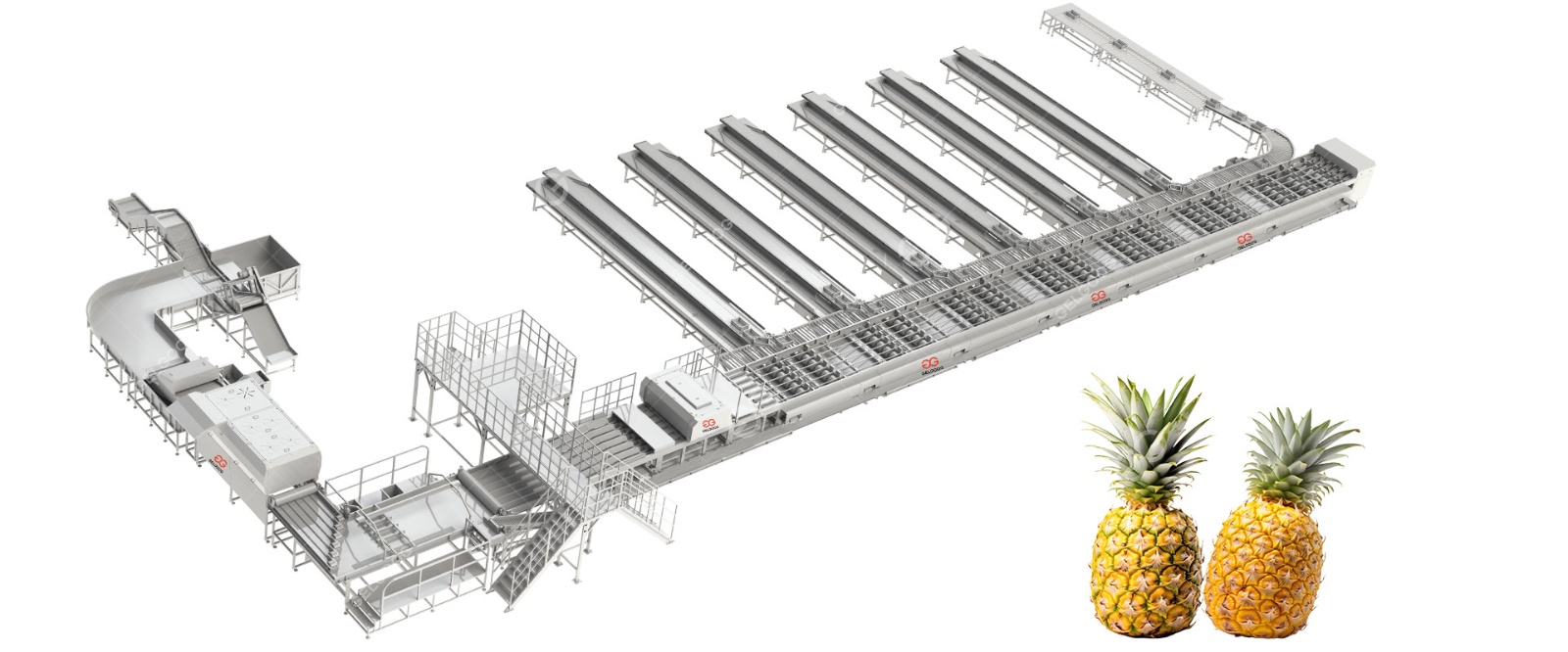 通过喷淋清洗、滚杠输送及光电检测系统,对菠萝的外观与内在品质进行综合评估,按大小、重量、糖度及内部状态(如黑心、褐变)进行精准分级,真正实现优质优价。该系统广泛适用于鲜果销售与鲜切加工前端处理。